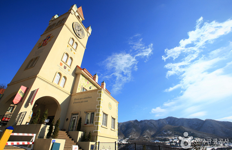 청평댐에서 남이섬 방향으로 호숫가 길을 따라 10km쯤 가다 보면 왼쪽 언덕에 이국적 건물들이 옹기종기 모여 있는 걸 볼 수 있다.